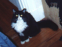 She came into our home in October 1999, though we first met her in August of the same year. Born to a very young stray cat in our neighborhood, our marvelous, amazing, stunning, cat-rescue-lady neighbor, Pat, managed to capture Tuxie (the mother) and Little Tux (later to become Perdita). She then braved long nights and an irritable skunk to capture the little black kitten she named Batman, Tuxie's other offspring. They lived in Pat's basement while Pat attempted to tame the two feral kittens (as well as spaying and vaccinating Tuxie, and vaccinating the two kittens -- did I mention that Pat is marvelous?)