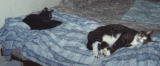 And here we have Beltane and Beekman on the foot of K's bed, producing enough cute rays to stun a nation. Beek has a knack for curling his toes in precisely the way to make all conversation in the room cease. Bel just looks graceful. | ![]() |